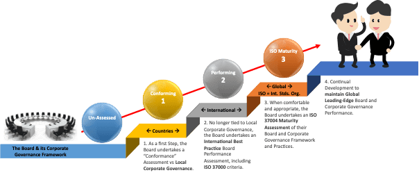 Not only have we ensured that our Service is updated with current global affairs and Global Best Practices, and that we continually maintain its currency, but also that it is consistent with ISO 37000 / ISO 37004 / King, and other leading frameworks on Governance, as well as relevant standards.