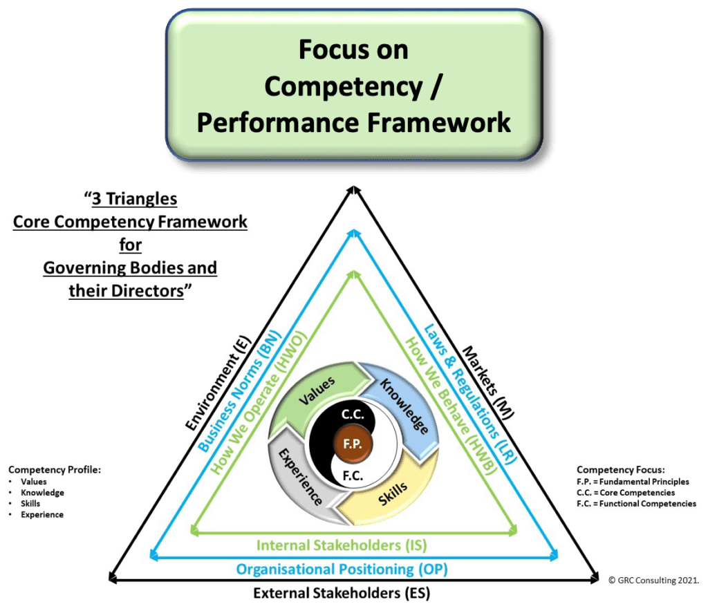 “3 Triangles Core Competency Framework for Governing Bodies and their Directors” – © GRC Consulting 2021.