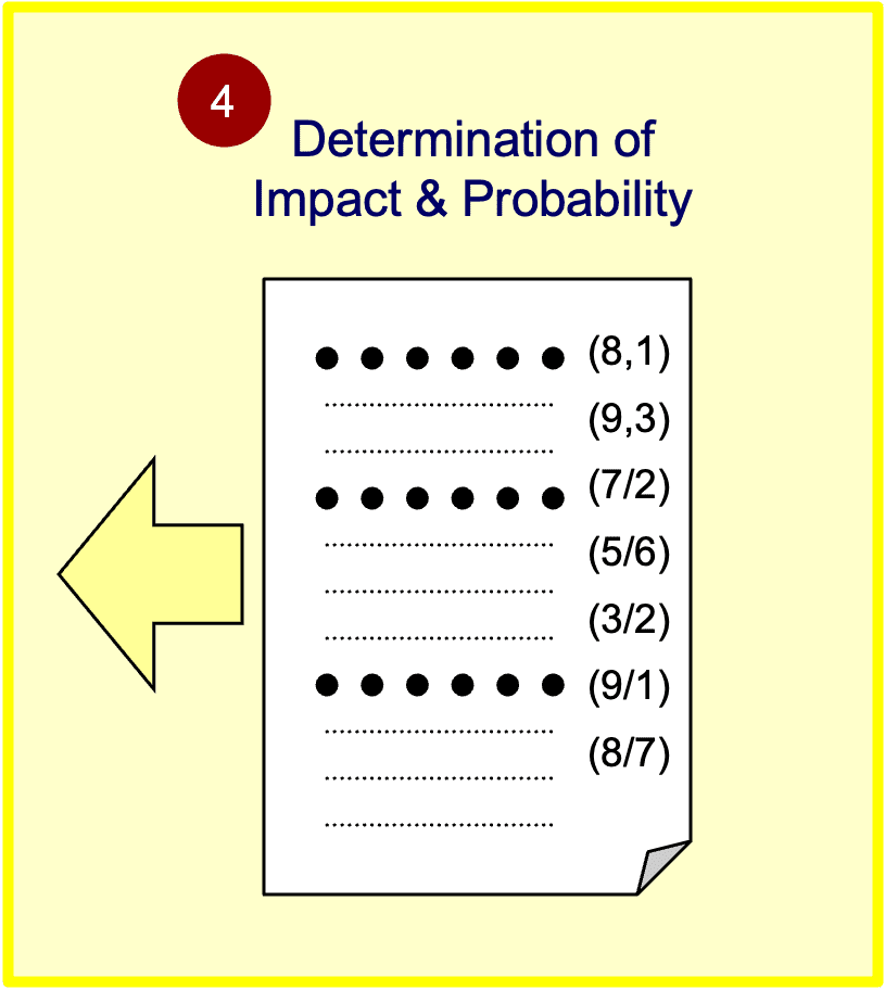 The result is prioritisation / ranking of identified risks by Impact and Probability.